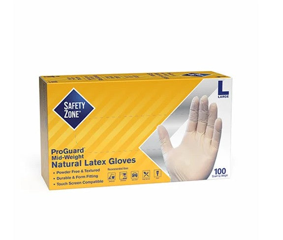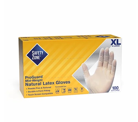 Safety Zone® 5 mil industrial grade disposable powder-free latex gloves balance durability, flexibility, and comfort. These 9.5” gloves offer excellent dexterity with a textured surface for a secure grip. Compliant with CFR Title 21, Indirect Food Additive Regulations Parts 174-178 for safe food handling.